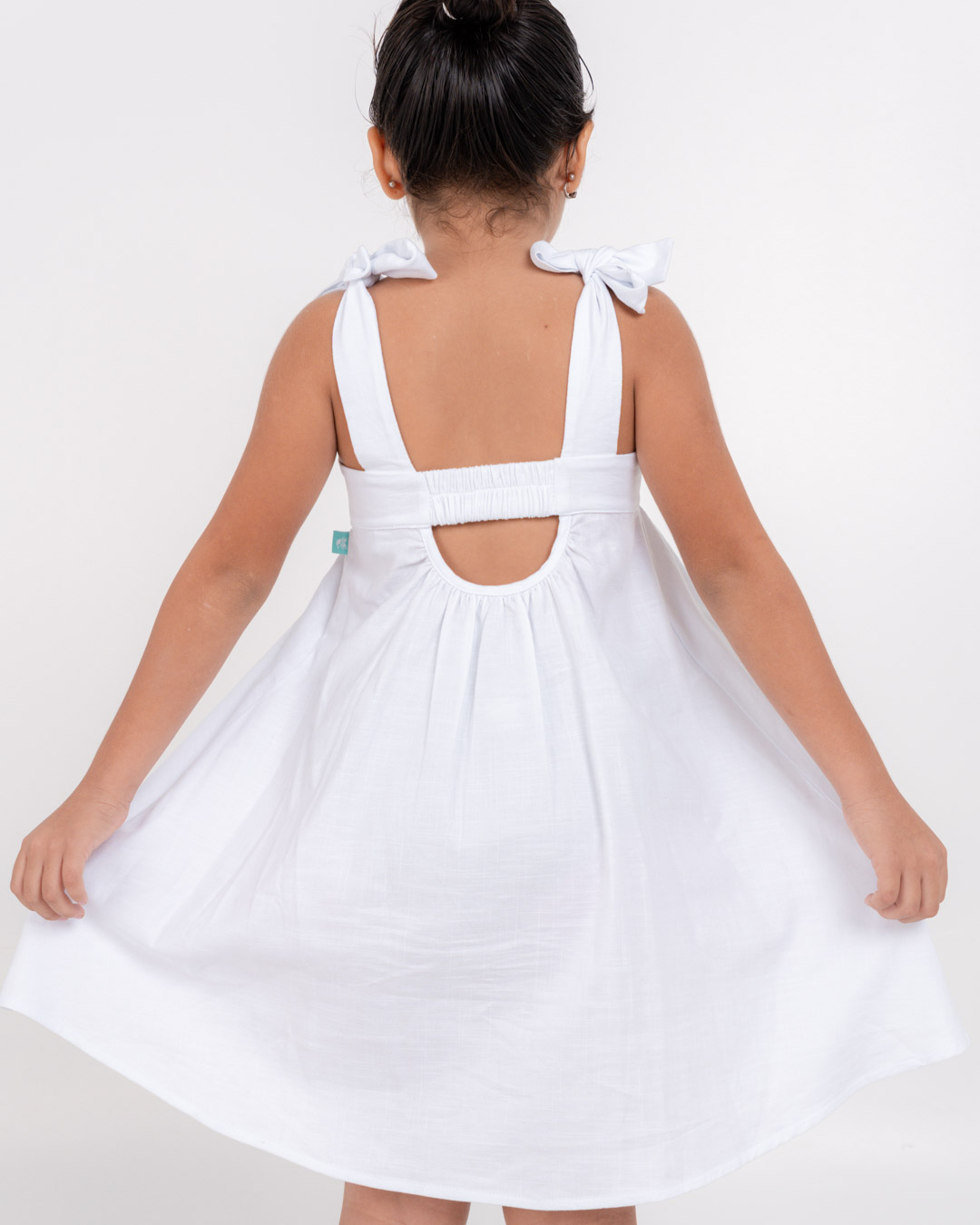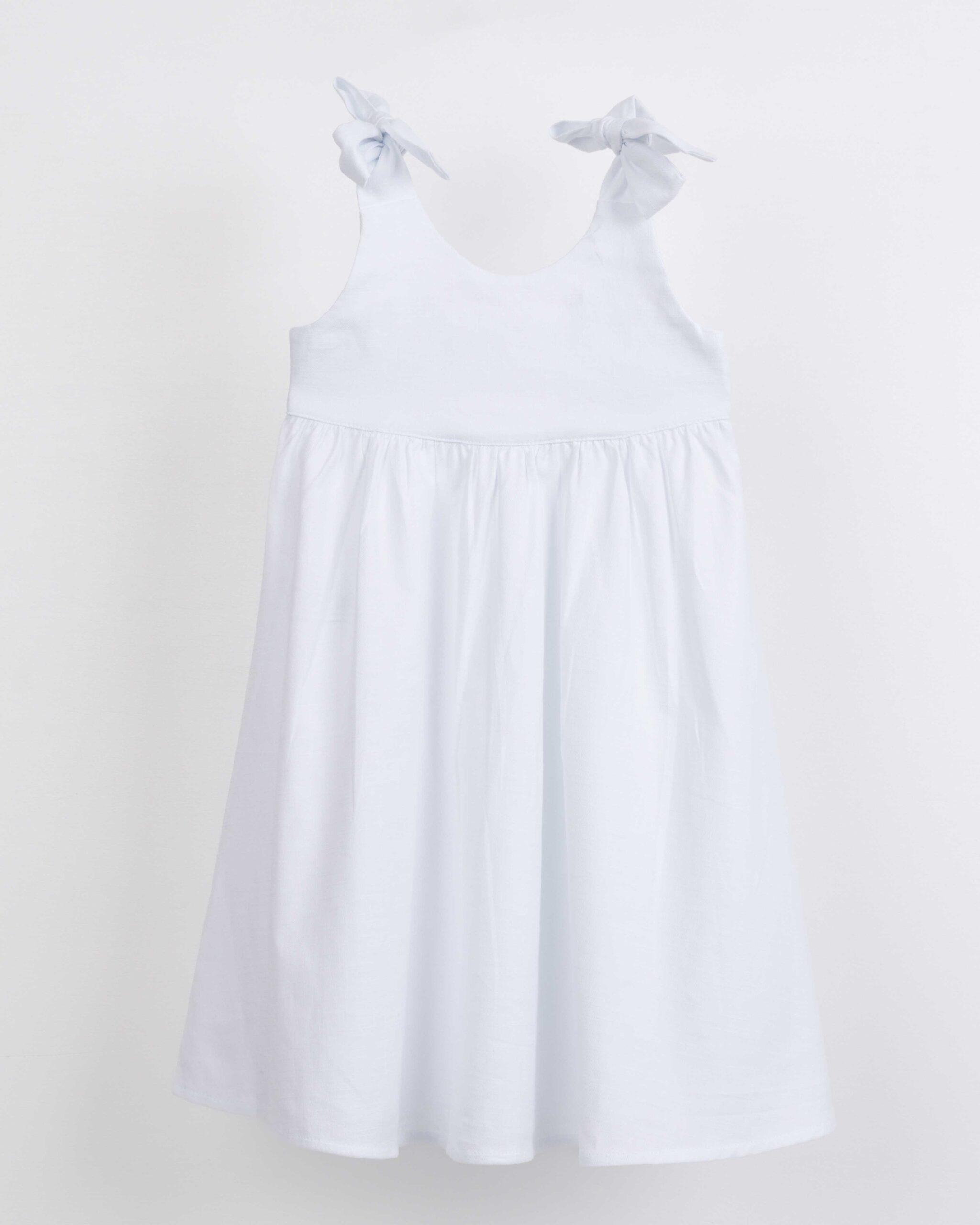 Vestido confeccionado en lino suave con diseño de tirantes y caída ligera. Su textura fresca y el vuelo natural del tejido lo convierten en una prenda ideal para días soleados, salidas familiares o eventos especiales. Un estilo limpio, cómodo y atemporal que acompaña con elegancia cualquier ocasión.
